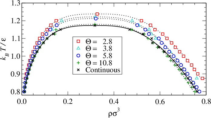These stepped approximations can closely reproduce the phase behavior of the LJ system: