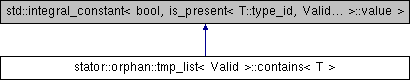 Inheritance diagram for stator::orphan::tmp_list< Valid >::contains< T >: