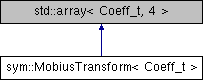 | typedef std::array<Coeff_t, 4> sym::MobiusTransform< Coeff_t >::Base |
